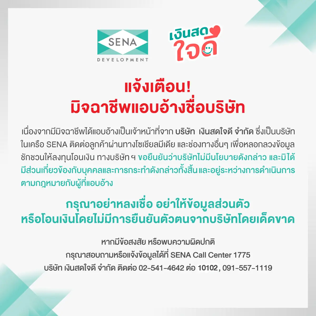SENA ร่วมกับธุรกิจน้องใหม่ในเครือ “เงินสดใจดี” ทางเลือกใหม่แก้โจทย์ใหญ่คนอยากมีบ้าน ชี้ลูกค้าหลังเจอพิษวิกฤตโควิด – เศรษฐกิจชะลอตัว – เงินเฟ้อ -ดอกเบี้ย-ค่าครองชีพพุ่ง ส่อปัญหาคนซื้อบ้านหด